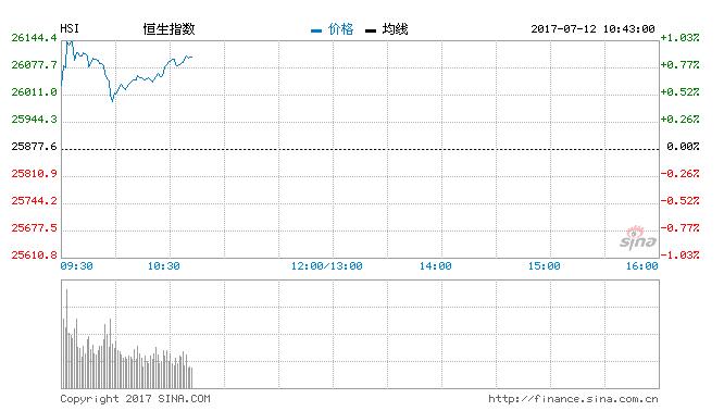 7月12日消息,美國三大股指漲跌不一,納指連續三天收漲,歐洲股市全線下跌;港股ADR指數表現強勁,按比例計算,收報25,975點,升97點或0.37%。今日早盤,恒指漲1.01%,報26319.58點,重返26000點,創2015年7月10日來新高;國企指數漲1.39%,報10560.73點;紅籌指數漲0.67%,報4034.11點。