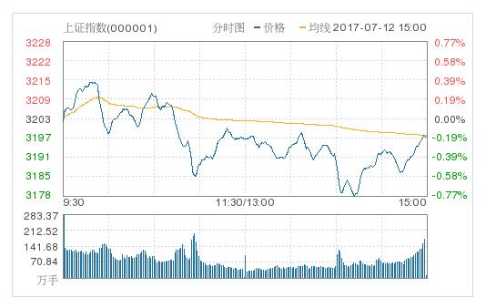 截至收盤,滬指跌0.17%報3197點,深成指跌0.14%報10453點。