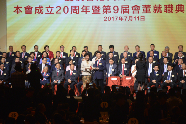 香港廣東社團總會「慶祝香港回歸祖國20周年 本會成立20周年暨第9屆會董就職典禮聯歡宴會」上,賓主祝酒。記者 蔡啟文攝