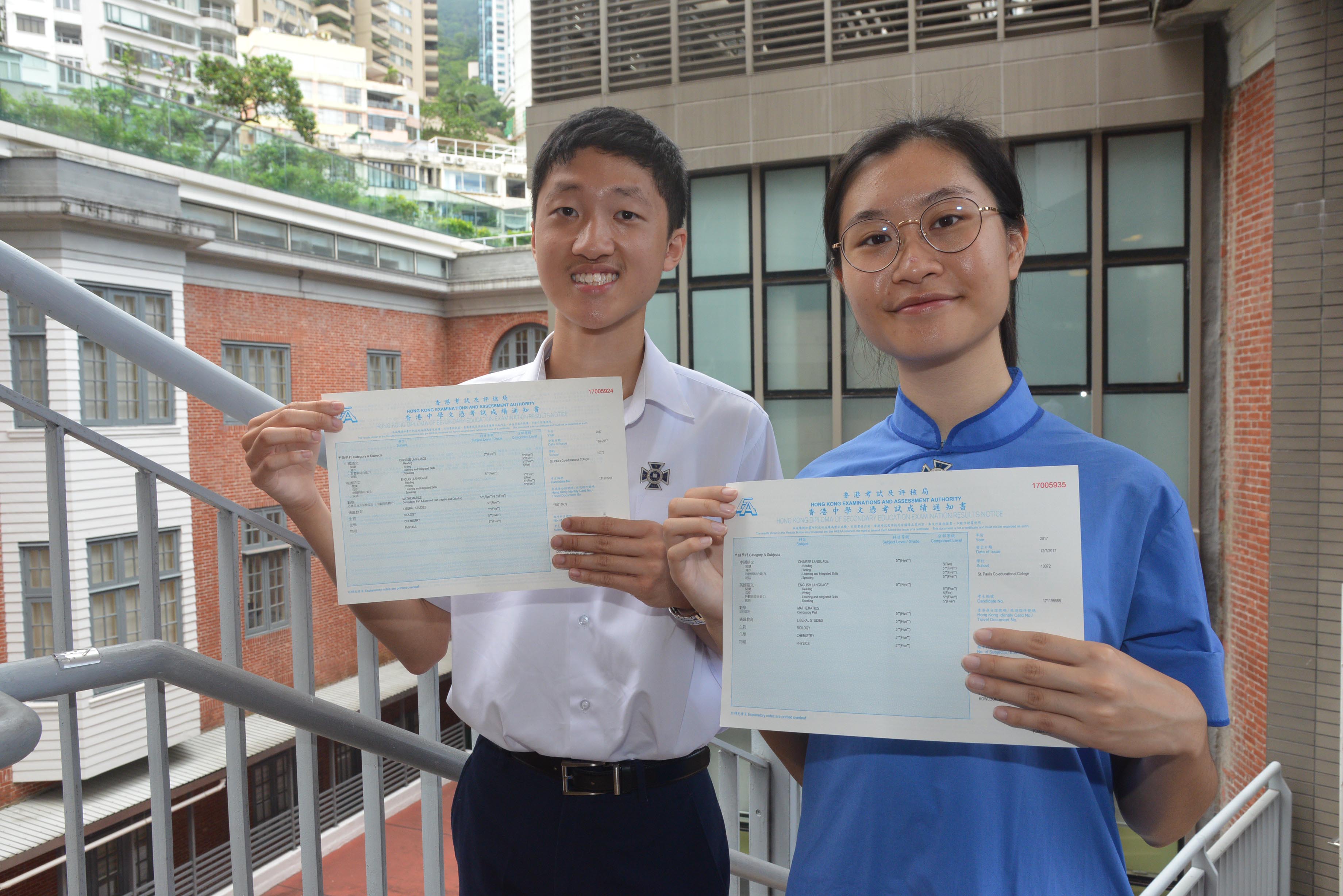圣保罗男女书院的2名状元,李朗轩(左)及邓惠慈(右)均表示专心上课最重要。