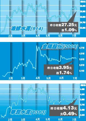 同時,內地逾20家水泥企業,包括海螺水泥、西南水泥、中材水泥、華潤水泥(1313)、冀東水泥等表示,由於原材料成本上升及市場行情出現變化,集體提出加價,涉及四川、廣東、重慶等兩省13市,為今年較大範圍的一次提價。