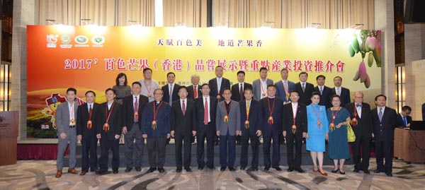 「2017百色芒果(香港)品嘗展示暨重點產業投資推介會」昨日舉行,賓主大合照。 記者 蔡啟文攝