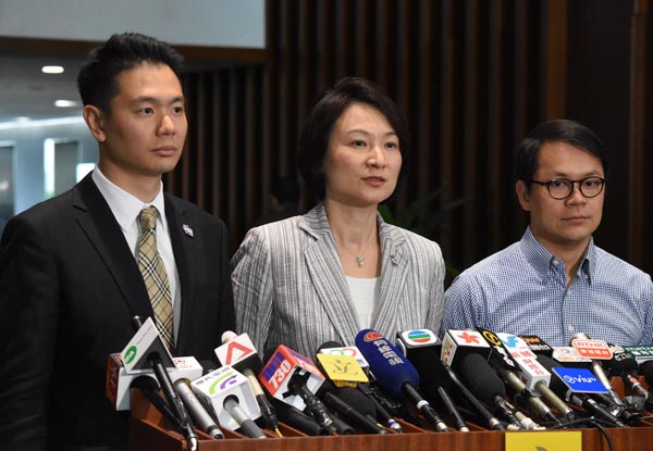立法會具法律界背景的議員包括梁美芬(中)、周浩鼎(右)及何君堯(左),一致歡迎法庭裁決。 記者 馮瀚文攝