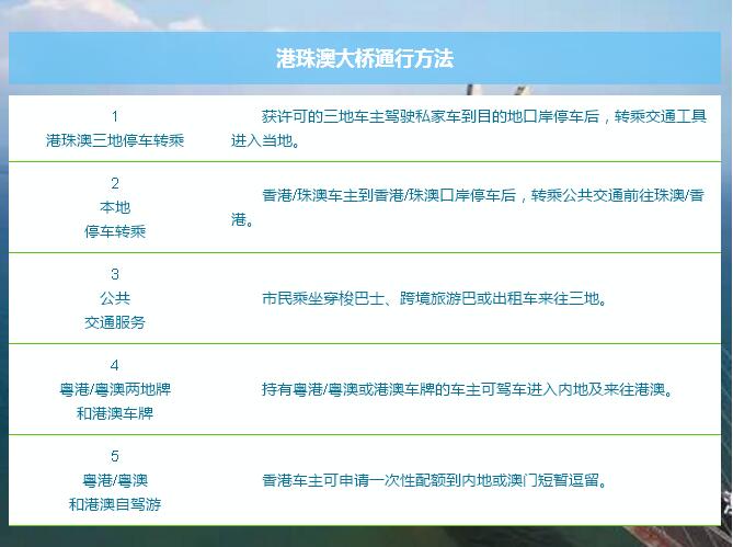 三地車主取得一次性特別許可后,可駕駛車輛過橋,但只能停泊在港、珠、澳各自的口岸停車設施內,然后與車上乘客轉乘當地的公共交通工具進入市區。有關私家車不能進入三地境內行駛。