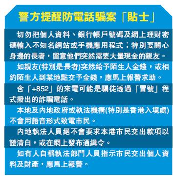 如有人自稱執法部門人員指示市民交出個人資料及財產,應馬上報警。