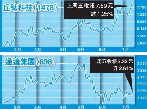 同為光學攝像頭模組生產商的丘鈦科技上月發盈喜,預期今年首6個月股東應佔綜合溢利按年增長超過100%。集團指出,增長主因攝像頭模組銷售數量同比穩步增長,而攝像頭模組的產品結構優化明顯,致使攝像頭模組平均銷售單價按年明顯提升。