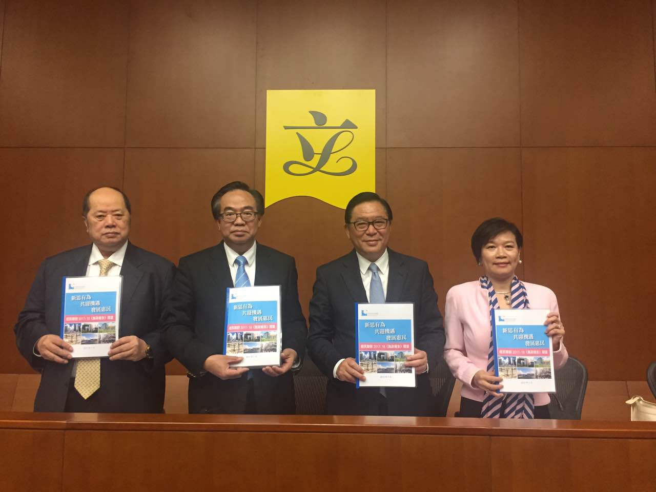 左起:經民聯立法會議員張華峰、盧偉國、林健鋒、梁美芬。记者 馮煒強摄