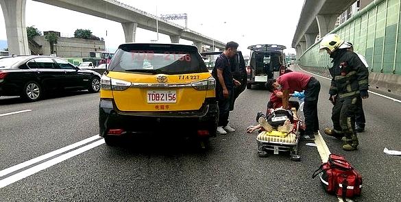 昨日早上10時許,一名姓梁本港男子(36歲)偕姓鄭妻子(35歲),乘機抵台后轉乘的士前往台北,據悉夫婦倆準備前往台北市一間婦科診所求醫,預計同日晚上10時許便啟程回港。當時,的士駛經中山高速公路國道1號北上33.7公里、五股交流道附近時,突與兩輛貨車及貨櫃車相撞。