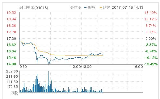 新浪港股讯 7月18日消息,融创中国(15.54, -1.66, -9.65%)今跌幅进一步扩大,最高跌逾12%,截至发稿,股价跌11.05%,报15.4港元。