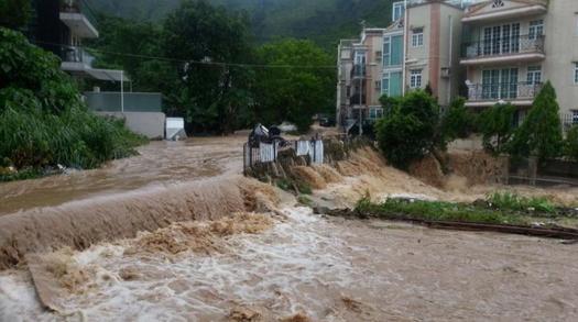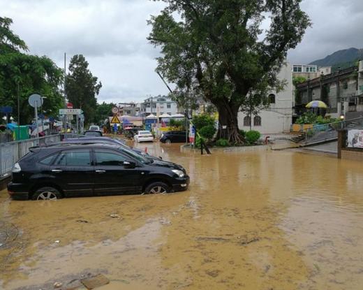 其中,大埔汀角村更有山洪暴發,水深及腰,河水湧上民居。有在地下的單位被水淹浸,有電單車和不少雜物被河水沖走,有村民需要在消防的協助下疏散。