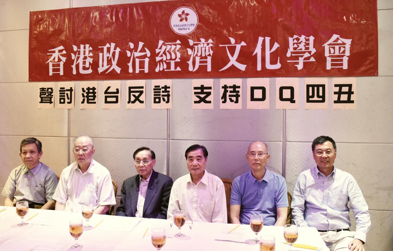 香港政治經濟文化學會昨晚舉行「聲討港臺反詩.支持DQ四丑」研討會。近日法庭作出裁決,宣判梁國雄、劉小麗、羅冠聰及姚松炎喪失立法會議員資格,是研討會的焦點之一。