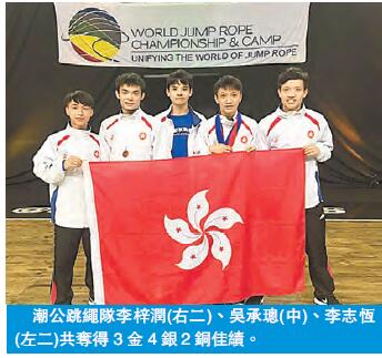 【香港商報网訊】港九潮州公會中學3位入選香港跳繩代表隊的成員,本月初在美國奧蘭多舉行的「世界公開跳繩錦標賽2017」中,擊敗多位來自世界各地的好手,奪得3金4銀2銅的佳績,連續三年於同項賽事中取得金牌。