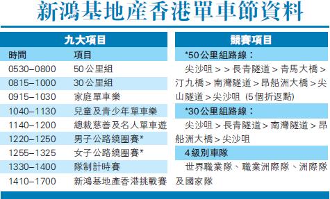 他指出,為容納較多公眾到場打氣和欣賞賽事,上述兩項賽事的終點均改到梳士巴利道1881對開位置。今年是香港回歸祖國20周年,大會特別增設「香港特別行政區成立20周年紀念盃」,由參與隊制計時賽的健兒角逐,希望市民和外國旅客能踴躍參加活動。