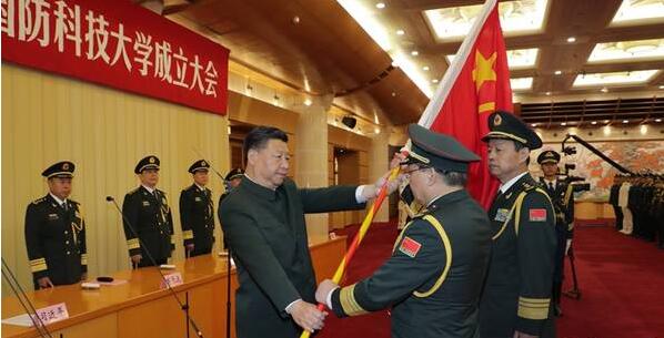 習近平向軍事科學院國防大學國防科技大學授軍旗致訓詞