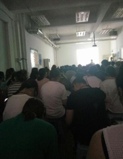 李月正在接受培訓的房間,不足150平米擠滿300人。(圖片由受訪者提供)