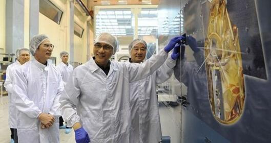 “台衛5號”將赴美發射,中間為台“行政院長”林全。圖片來自台灣經濟日報