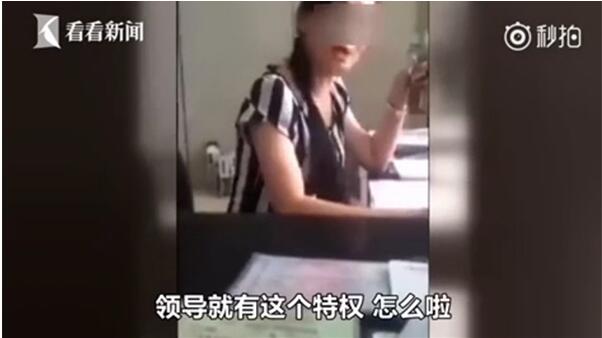 “領導就有特權,就可以插隊,排號是針對老百姓的。”7月14日下午,江蘇鹽城阜寧縣交警大隊違章處理中心窗口,女工作人員焦愛芹沖著前來辦理業務的一名男子“喊”道。