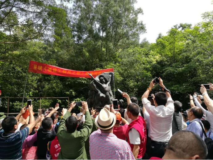 【香港商報网訊】記者余安之報道:7月20日,深圳市拓荒史研究會響應習近平同志“要把艱苦奮斗的精神一代一代傳承下去”的號召制作的《基建工程兵之歌》雕塑,在筆架山公園舉行了雕塑揭幕儀式。原基建工程兵老兵代表及社會各界共100多人參加了揭幕儀式。