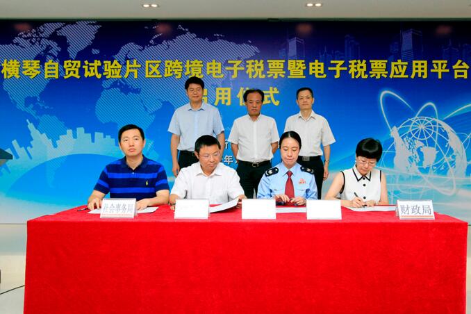 橫琴電子稅票應用平臺使用單位與稅務部門簽訂《電子稅票應用平臺工作協議》。