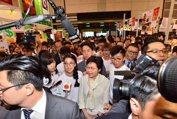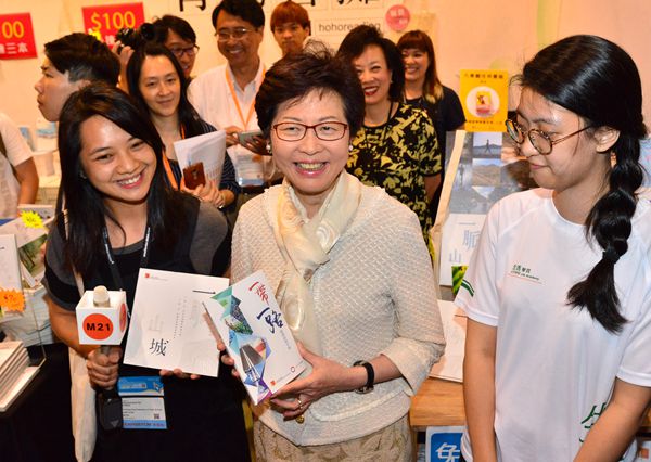 林鄭月娥(前排中)受邀到書展與青年對談。