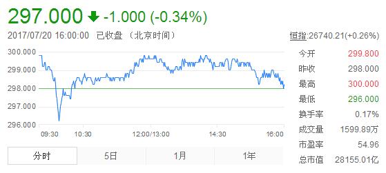 【香港商報網訊】實習記者王韻琪報道:「股王」騰訊(700)持續強勢,昨早初段一度觸及300元大關再創歷史新高,但升至高位後開始有獲利沽壓出現,全日反覆高位爭持,尾市回吐0.34%,收報297元,較前個交易日跌1元,成交量為1600萬股,成交額高達47.8億元;今年以來,該股已累積升近五成八。