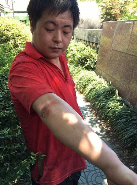 廖先生救人時劃破的傷口
