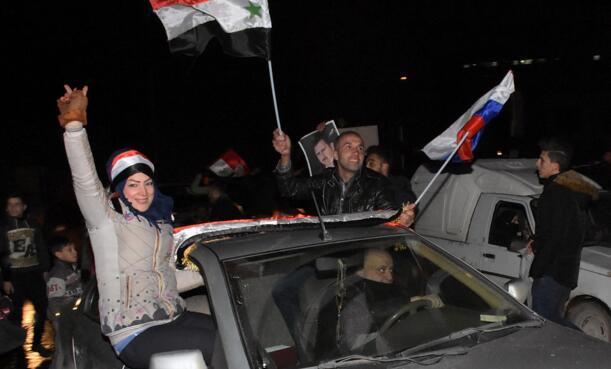 敘利亞民眾慶祝收復阿勒頗 @視覺中國