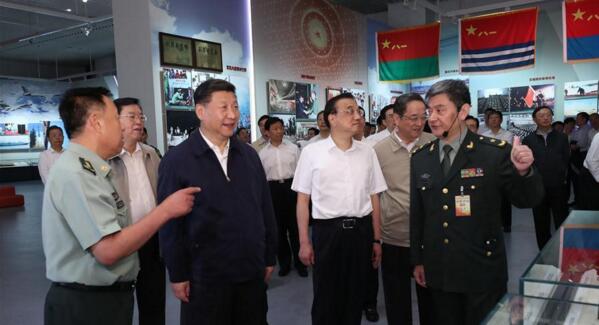 7月21日,黨和國家領導人習近平、李克強、張德江、俞正聲、劉云山、王岐山、張高麗等在中國人民革命軍事博物館參觀“銘記光輝歷史開創強軍偉業——慶祝中國人民解放軍建軍90周年主題展覽”。 新華社記者馬占成攝