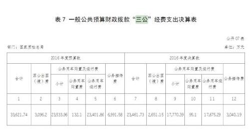 根據財政部此前公布的數據,2016年,中央本級“三公”經費財政撥款支出合計48.25億元,比預算數減少14.85億元,下降23.5%,與2015年相比下降10.2%。