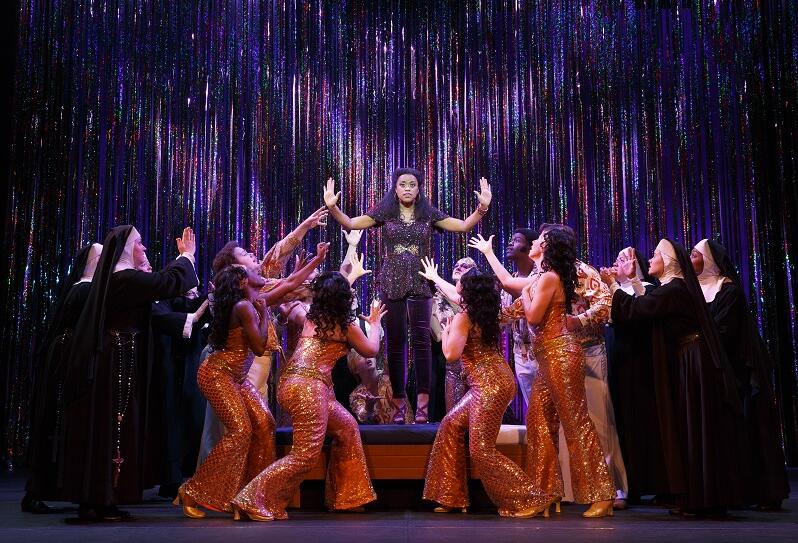 本次飾演迪勞麗絲的演員Dene Hill,是一位國際獲獎歌劇演員。她的聲樂技巧與表演早在第一幕的“復古迪斯科中”就征服了所有人。其實歷史上每一位飾演迪勞麗絲的演員都不甚相同,“這個角色和個人氣場的關系以及影響都很大,但當我看到Dene Hill時,我覺得我看到的就是迪勞麗絲”,副導演Steven Beckler這樣評價道。不過比起電影中,一人挑大梁的劇情線,音樂劇中可不僅僅只有女主令人耀眼。除了警察炫酷的變裝和小修女引發全場合唱的驚艷solo,教皇的反差Rap、胖修女的呆萌大條、三個狗腿小弟的群口相聲、院長嬤嬤與女主的激情尬舞……每一位都是撐起全劇笑點的重要擔當。
