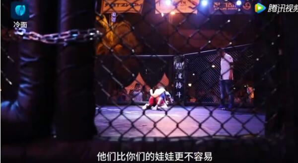 視頻中,兩個孩子在一個鐵籠子里格斗,鐵籠外有許多成年人拿著手機圍觀拍照,甚至還有粉絲在賽后找孩子們合影留念。