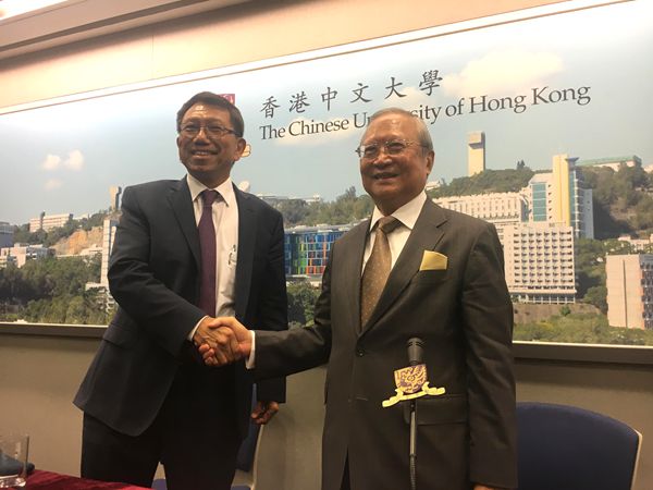 梁乃鵬歡迎段崇智(左)擔任中大第8任校長。