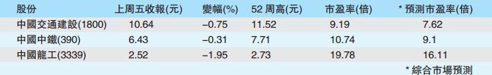 最近數月,估值較低的中資股成為大行熱捧對象,但這些中資股的表現常受政策影響,令散戶一時難明方向。不過,若有留意內地經濟動向,不難發覺基建行業受惠政策多年,至今仍是內地經濟發展的主旋律,相信內地亦不會改變對發展實體經濟的決心,因而心大心細的投資者,不妨還原基本步,考慮以中國交通建設(1800)、中國中鐵(390)和中國龍工(3339)為首的基建相關股。