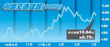 野村發表報告指,將中國中鐵評級由「中性」上調至「買入」,因該行相信內地金融去槓桿將會收窄地方政府的資金渠道,反而增加建築公司的議價能力,有利公司達成高利潤率的交易,而另一個原因就是估值吸引。的確,以中鐵昨日收市價6.43元來計算,較A股昨日收市價8.87元折讓近60%,投資者趁低吸納亦無不可。