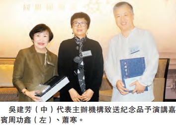 周功鑫從事博物館相關工作長達43年,用多種現代手法促進台北博物館文化的傳播,她從中國古代文物的源流、故宮文物南遷及台北故宮的文物收藏精華講述故宮同根同源的故事。在互動環節中,她被嘉賓問到對於興建西九故宮文化博物館的看法,周功鑫表示這是一件好事,香港擁有150多年的殖民歷史,中西合璧有助呈現多元化的中華歷史文化,將會給大家帶來更廣闊的視野。她建議香港要結合「在地性」,在比較與融合中展示獨特的歷史與文化。