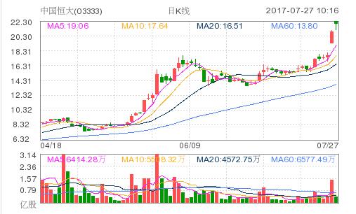 中國恒大昨日大漲18%后,今早在財報利好下繼續高開高走,截至發稿,中國恒大漲2.87%,報21.45港元,成交額5.95億港元,成交量2763萬股,最新市值2808.58億港元。