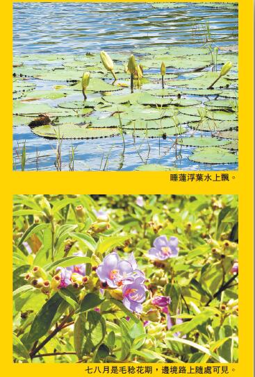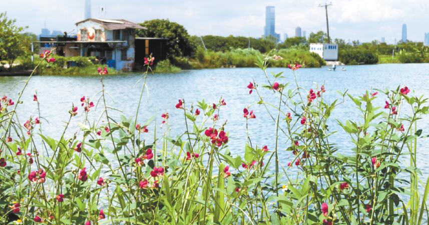 豐樂圍魚塘野花盛開。記者 鄭玉君攝