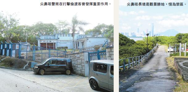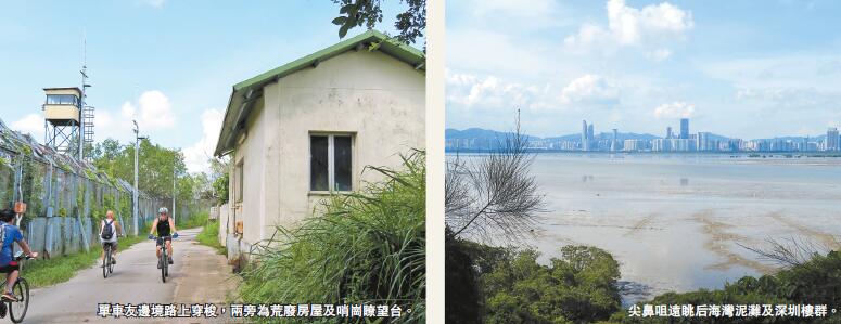 離開魚塘到邊境路,面貌截然不同,原本一片開闊平疇的景象被鐵絲網「高牆」斬斷。鐵網外是邊境禁區以及拉姆薩爾濕地的範圍,再出一點就是后海灣,這海灣分隔新界西北與深圳福田,兩地相距只有約四公里。依據歷史往績,后海灣曾是偷渡熱點,警務人員在邊境路巡邏及監視。現時從內地偷渡港境已不合時宜,但后海灣邊境路仍殘留反偷渡設施,除了鐵絲網,還有照明燈、哨崗瞭望台、荒廢的房屋等。而邊境路盡頭的尖鼻咀警崗至今依然運作。