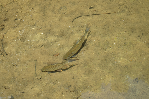 鱲魚在河沙中尋找食物。