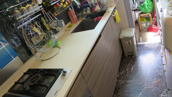 據現場所見,單位裝潢普遍沿用原裝,保養狀況良好,業主在部分地方稍加入可拆卸裝置,例如走廊與兩廳之間加了一道木門,分隔了會客及居住區域,提升了住戶私隱度。整體而言,全屋面積四正,兩廳呈日字形,配置大型家具後亦感寬敞,廚房及兩間洗手間活動空間亦充裕,惟兩房窗台較大,稍稍降低實用度。