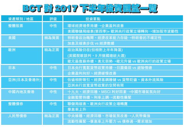 夏卓華又預期,港股下半年走勢正面,第3季市况仍強,但下半年回報將不及上半年,因為已累積一定升幅,對整體股票市場持「中性」看法。同時,他認為,內地經濟增長穩定,令人民幣偏強,因此對人民幣債券的看法稍為正面,并認為在內地來港資金中,以保險公司為主的機構投資者的長線投資將有利香港市場。