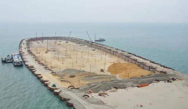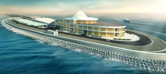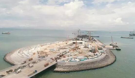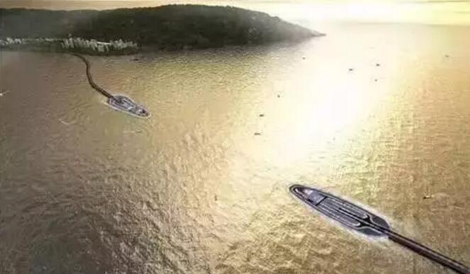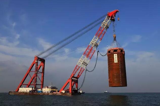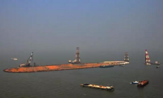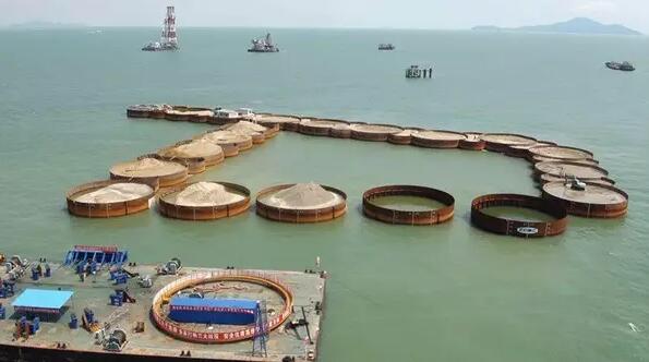建築師們用一個個巨型鋼筒插入到海底並固定在海床上,然後在中間填土形成人工島。120個巨型鋼筒串起,形成隧道兩端的圓心島,每個圓鋼筒的直徑 22.5米,幾乎和籃球場一樣大!高度55米,相當於18層樓的高度!而重量達到550噸,相當於一架A380“空中客車”!