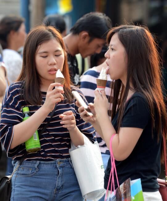酷熱天氣下途人吃雪糕消暑。記者崔俊良攝