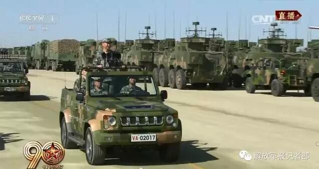 高亢嘹亮的檢閱號角響起,一輛野戰檢閱車向著受閱部隊緩緩駛去,習主席神采奕奕站在檢閱車中央。