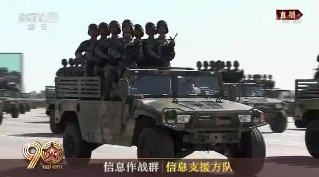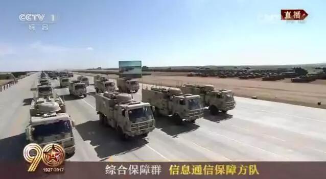 信息通信保障方隊接受檢閱,領隊為楊毅少將。受閱裝備具備全時通、全域通、全頻通保障能力,使人民軍隊的“千裏眼、順風耳”更加耳聰目明。