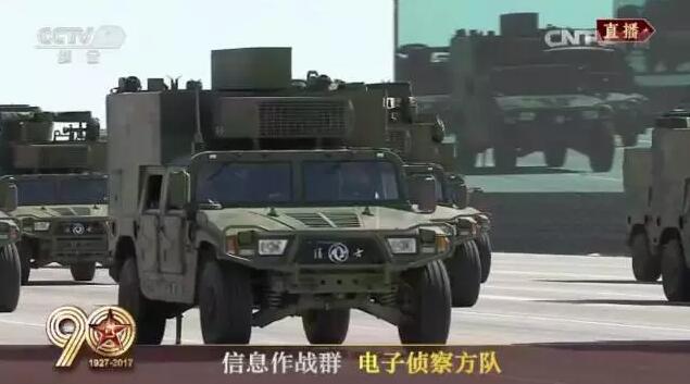 電子對抗方隊,由雷達幹擾車和通信偵察幹擾車組成,領隊為吳亞非少將。電子對抗已經成為現代戰爭中的重要手段。新型電子裝備列裝部隊,使我軍電子對抗能力獲得長足發展。