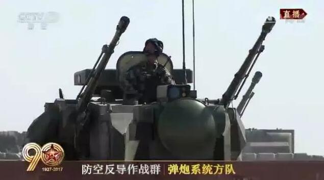 彈炮系統方隊,由09式自行高炮、紅旗-6彈炮導彈發射車和跟蹤高炮車組成,領隊為董玉江少將。彈炮系統是防空體系的重要一環,具有快速機動、活力密集等特點,是低空抗敵、末端防禦的有效手段。