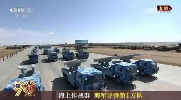 海軍導彈第1方隊由海紅旗-9B艦空導彈和鷹擊-12A艦艦導彈組成,領隊為魏文徽少將。海紅旗-9B主要擔負艦艇區域防空任務,鷹擊-12A主要擔負大中型水面艦艇打擊任務,兩款新型導彈都是奪控制海權的“殺手鐧”武器。