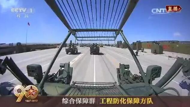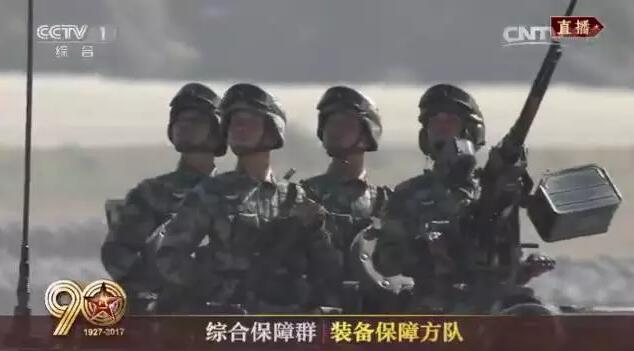 由信息通信保障方隊、工程防化保障方隊、後勤保障方隊、裝備保障方隊組成的綜合保障群接受檢閱。