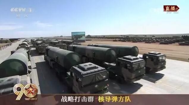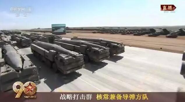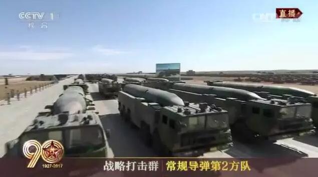 核常兼備導彈方隊,領隊為趙秋領少將。東風浩蕩,雷霆萬鈞。今天受閱的東風-26導彈,能夠跨區域無依托機動發射,可實施快速核反擊和常規中遠程精確打擊。